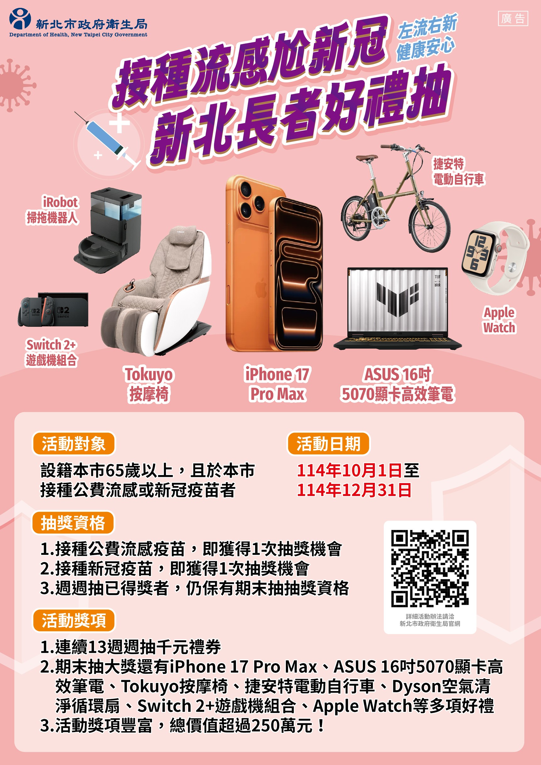 接種流感尬新冠 新北長者好禮抽