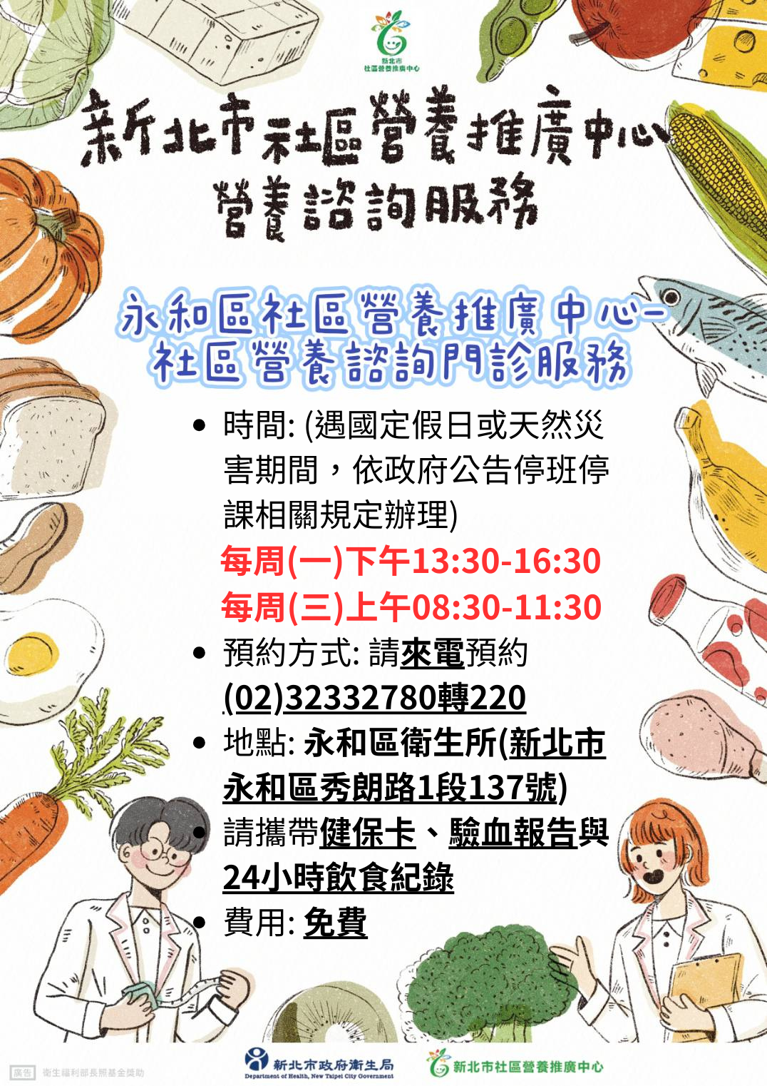 永和區社區營養推廣中心-社區營養諮詢門診服務