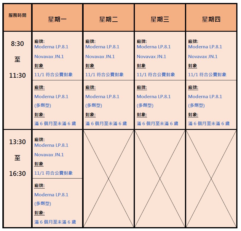 本所自114年11月12日起新冠疫苗接種類別調整,門診時段內(星期一~星期四)隨到隨打喔~